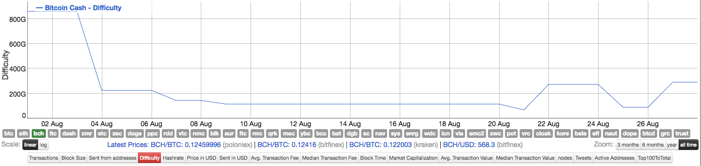 The other interesting thing to note is how and when the level of difficulty can adjust to crypto. This is a graph that tracks the level of difficulty of the BCH: