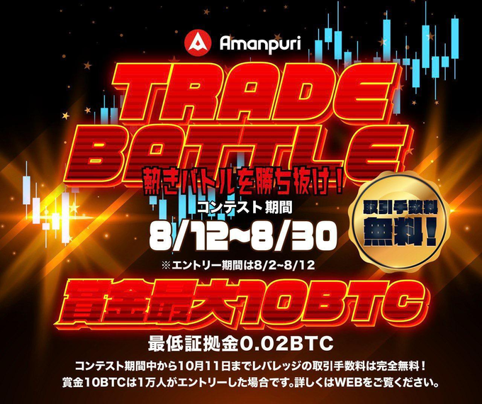 * You cannot enter the contest out of the entry period. Not allowed to participate on the half way. ROE competition period:8/12 09:00 ~ 8/30 08:59(UTC) Requirements of competition:Hold margin above 0.02 BTC Number of participants and total prize amount:
