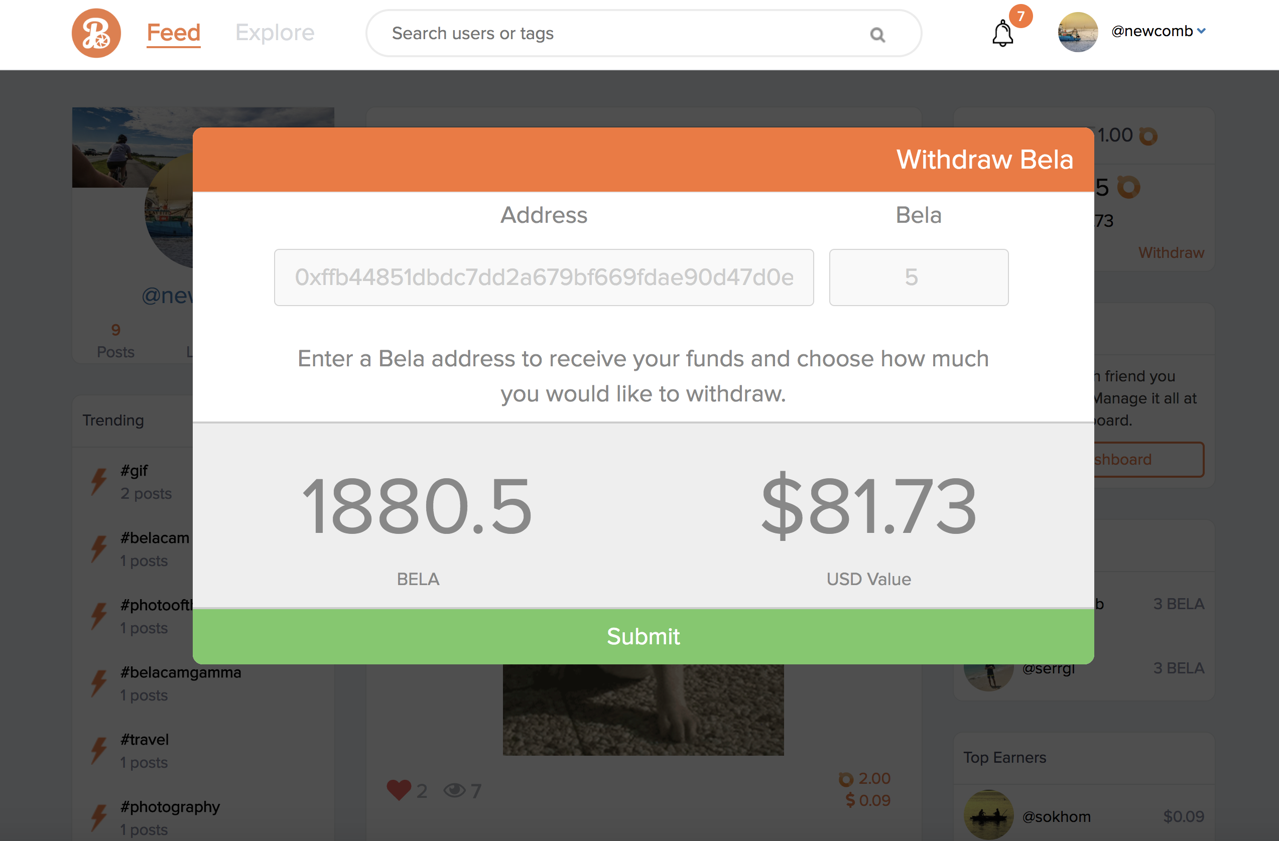 You can also specify the address of your wallet on the exchange and exchange Bela for Bitcoin, Ethereum or even Fiat.