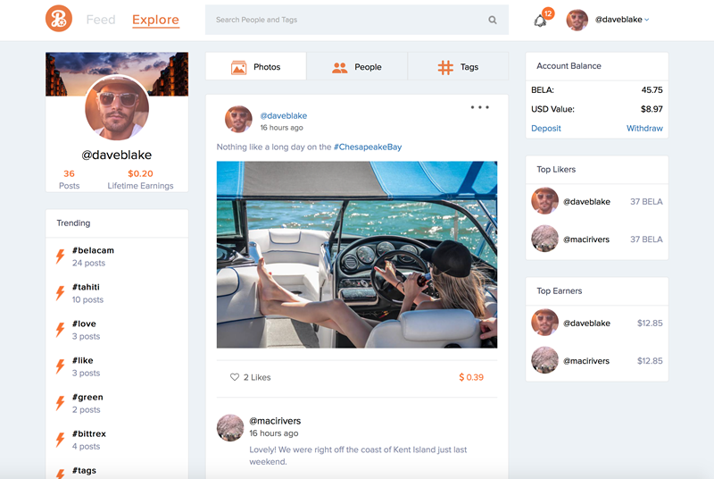 The creators of Belacam offer a simple concept of encouraging authors of interesting and high-quality photos. For every Like under their pictures, they get Bela's internal cryptocurrency, which can be turned into real money.