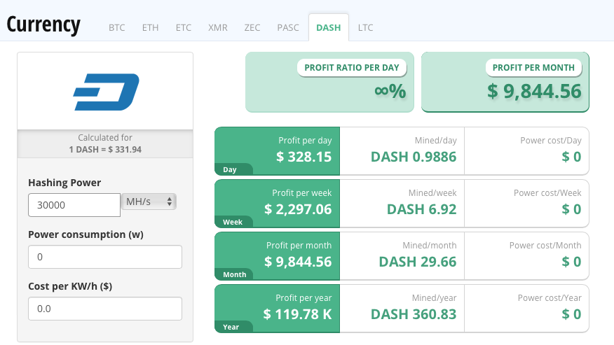 Check out the ROI on Standard Hashing power of 30000 MH, 30.0 GH