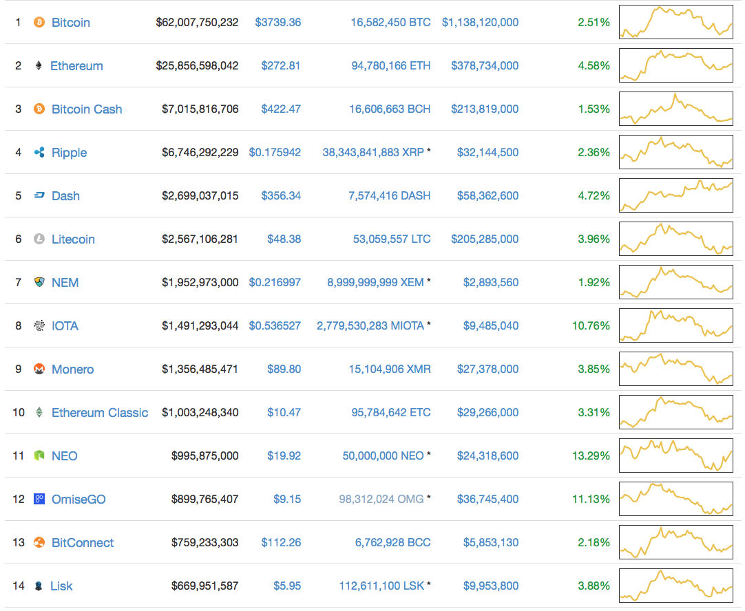 (DASH) DASH - Dash is at number 5 with a low coin supply of 7.5M, DASH is the second most valuable n terms of individual coin value sitting at around $356. DASH has had a good ride through this China Ban and has not really lost and value, it has peaked at around $400 but has no way near dropped as much value as its competitors. DASH in my eyes will be a coin with a high value of over $500 in the near future. It could even break $1000 next year if t keeps going the way its going now.