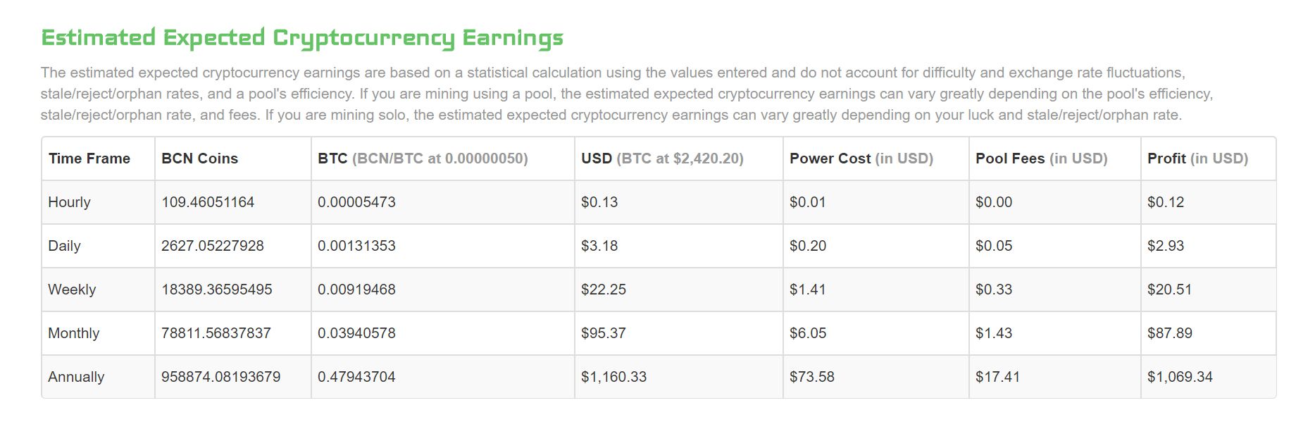 *This is only possible if I stay overclocked mining 24/7 for a year though putting stress on my hardware and if BCN grows in vaule.