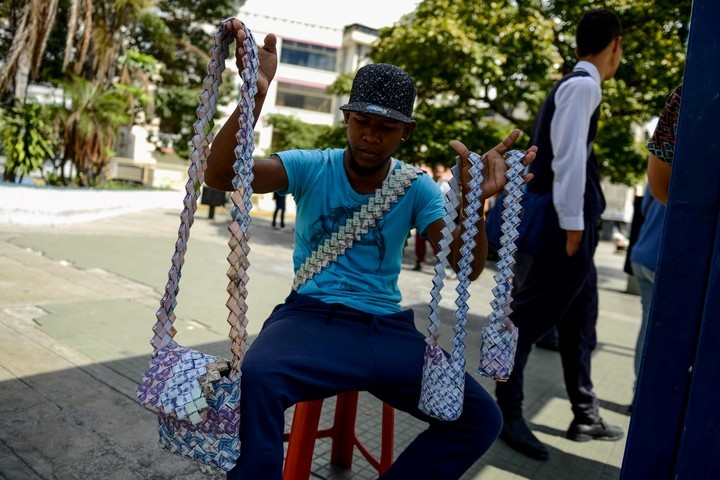 Bueno pero para qué te puede servir un billete de 50? Ni para un cafecito jajaja. Lo del mosaico me parece genial. Nos ponemos a venderlos como este señor: