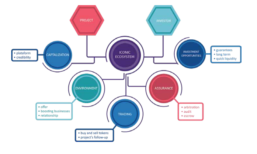 L’écosystéme est ICONIC est donc divisé en 3 plateforme, chacune dédié à un aspect de la valorisation de société sur la blockchain et la sécurisation des fonds :
