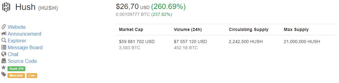 La raison est l'annoncement d'un snapshot qui aura lieu le 16 janvier et qui aboutira à la création d'une nouvelle devise : le BTCH, mélange entre la technologie du BITCOIN et de HUSH.