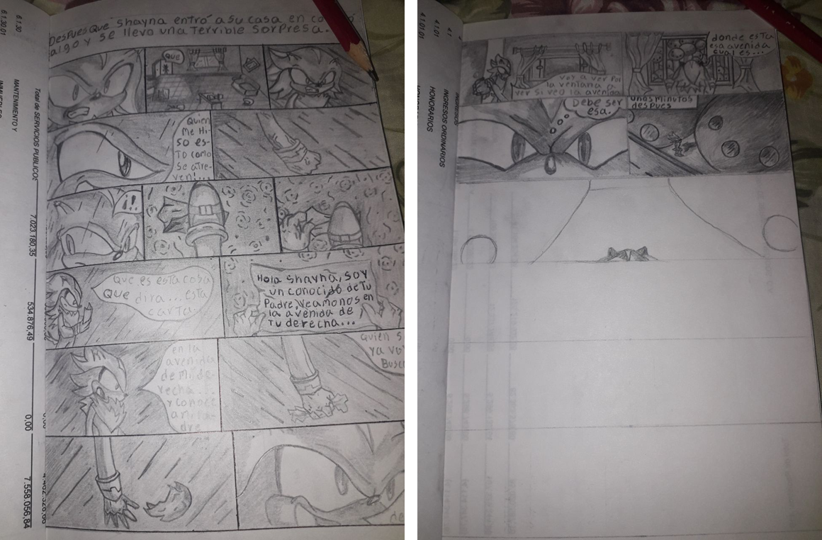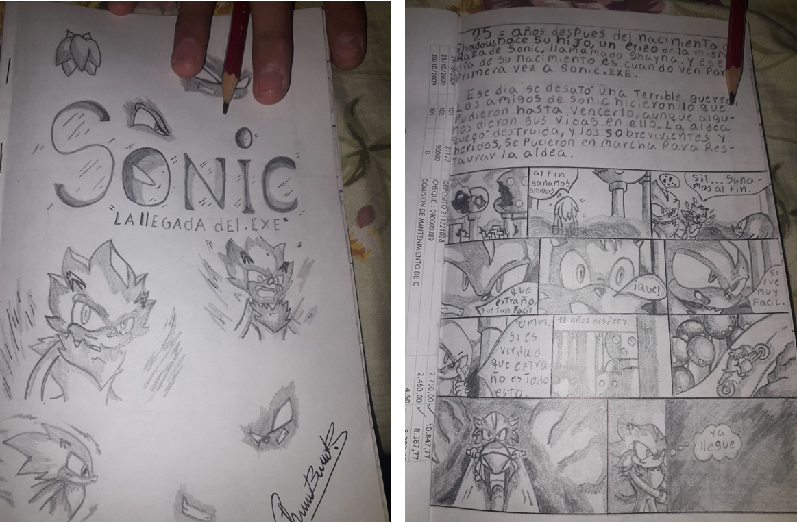 Me encuentro elaborando un nuevo comics con mi hermano, me gusta mucho hacer comics y este se trata de este personaje llamado SONIC, lo llame "la llegada de .EXE", el de mi hermano es de dinosaurios por que se vuelve loco por los dinosaurios, es super fanático.