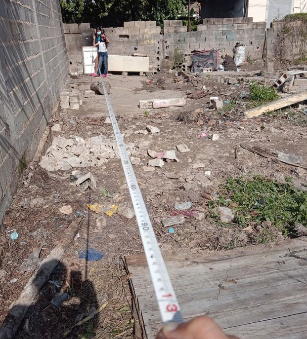 Las medidas del terreno donde se va a construir la casa son 13mt de profundidad x 8mt de ancho. Y la medida de la Casa será de 8mt de profundidad por 6 mt de ancho. Quedarán algunos metros de patio, los cuales estamos evaluando rellenar, pues el problema de la familia siempre ha sido que el terreno se encuentra muy por debajo del nivel de la calle, entonces toda el agua de lluvia se estanca en dicho terreno.