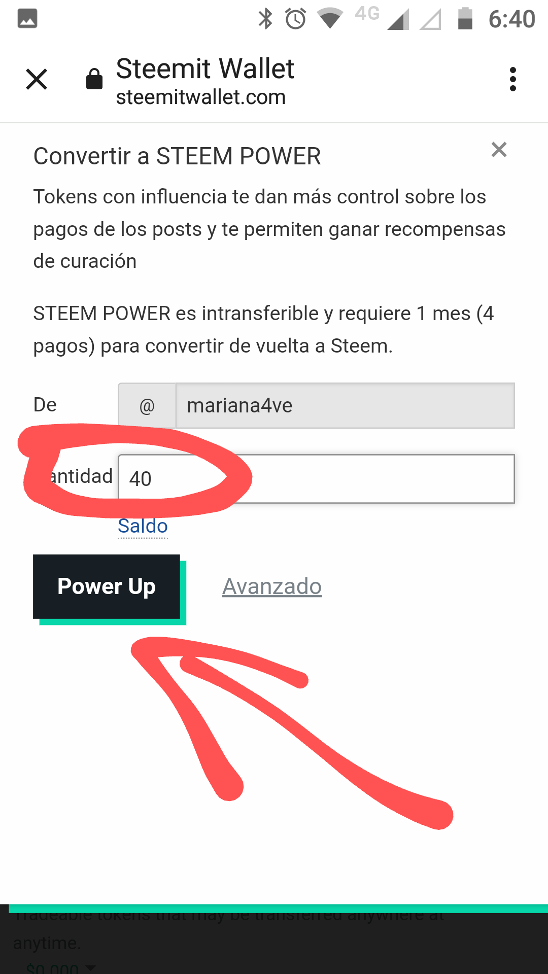 En mi billetera tenía 40 y algo de Steem, como a mí me gustan los números redondos. Procedí a encender 40.
