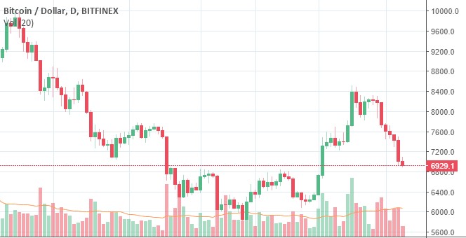 In the past 24 hours, the Bitcoin esteem tumbled from $7,250 to $6,950, expanding its adversity on August 4 and recording another 4 percent incident on the day.