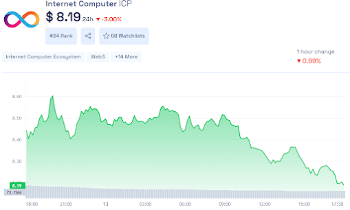 As of writing this article ICP was trading at $8.19 with 3%fdp in last 24 Hours as per coinpedia markets data