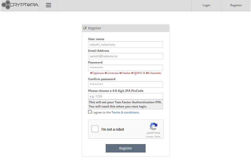 Signing up for Cryptopia is incredibly easy. Start by filling out the registration form on the website. From there, you will need to verify at least your email address. If you only verify that piece of information, you will have a daily withdrawal and transfer limit of $5,000.