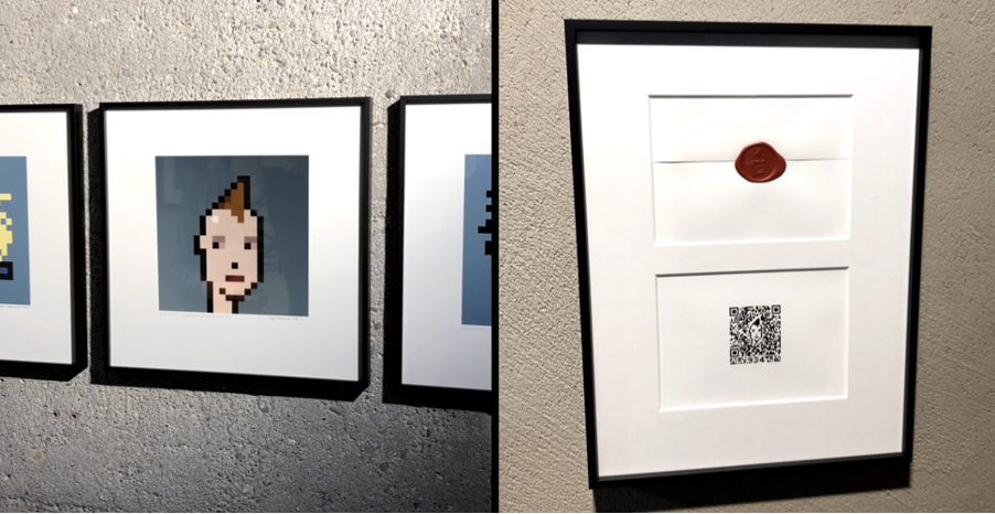 To attach the digital ownership of a CryptoPunk to a physical print using something called a “Paper Wallet.” This means they sealed a long passphrase inside a physical envelope, then sealed the back with a custom wax seal to protect the contents. Every seal has the face of the punk, corresponding to the unique work. The long passphrase inside the envelope is the key to accessing digital ownership of this punk on the Ethereum blockchain. As long as the wax seal on the envelope is unbroken, you can be sure that the digital version of the art is still attached to the physical print in your possession. You, as a collector, are then free to buy or sell the physical print and envelope as a proxy for the digital edition.