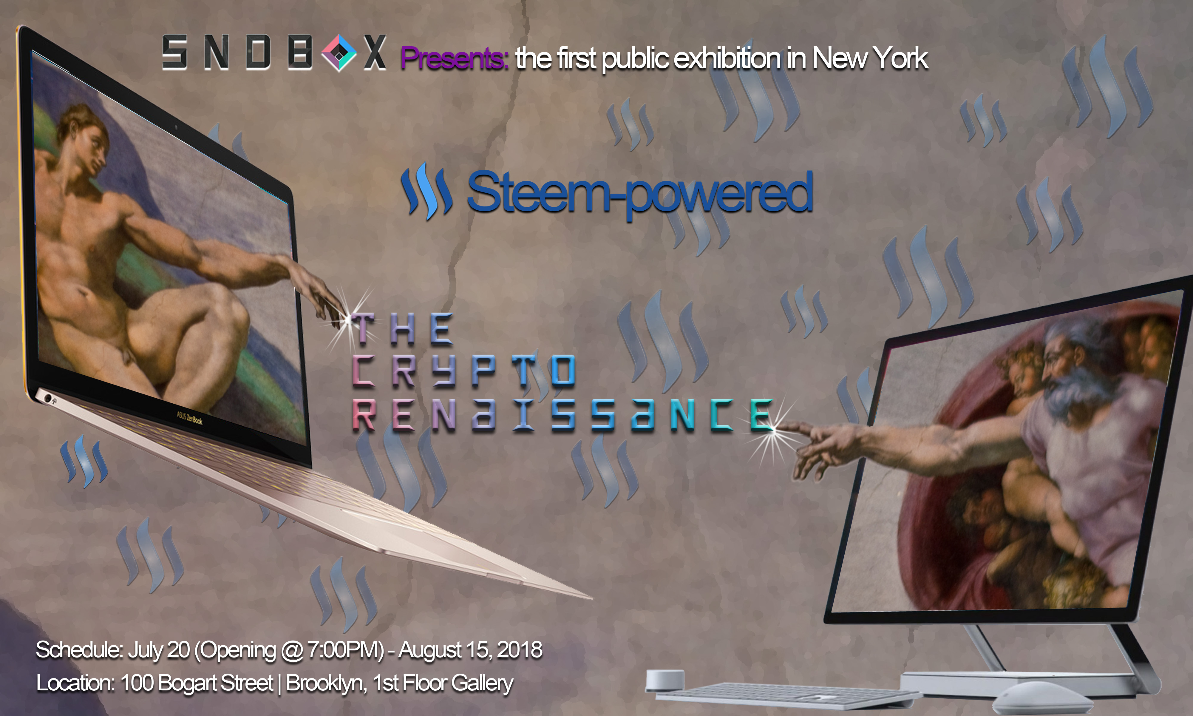el siguiente enlace describe mejor este evento: https://steemit.com/exhibition/@sndbox/announcing-the-crypto-renaissance-a-steem-powered-exhibition-in-nyc
