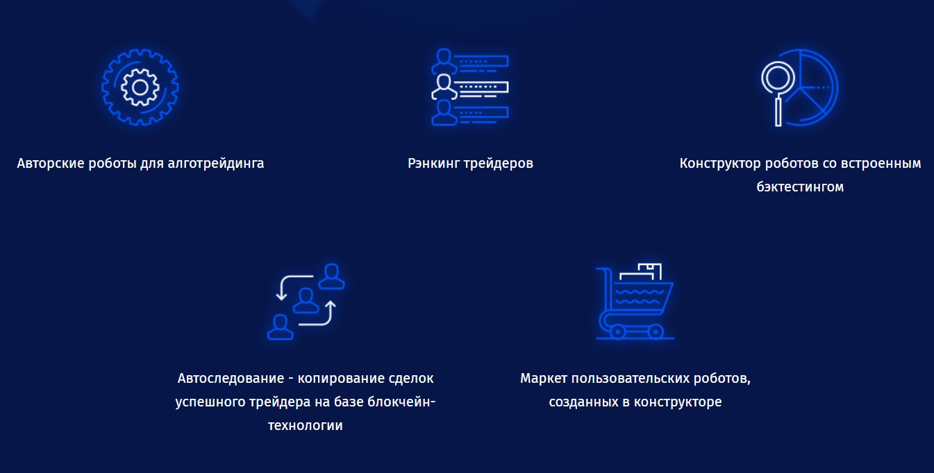 - механизм автоследования, когда успешные сделки будут копироваться в базу данных, реализованную на технологии блокчейн;