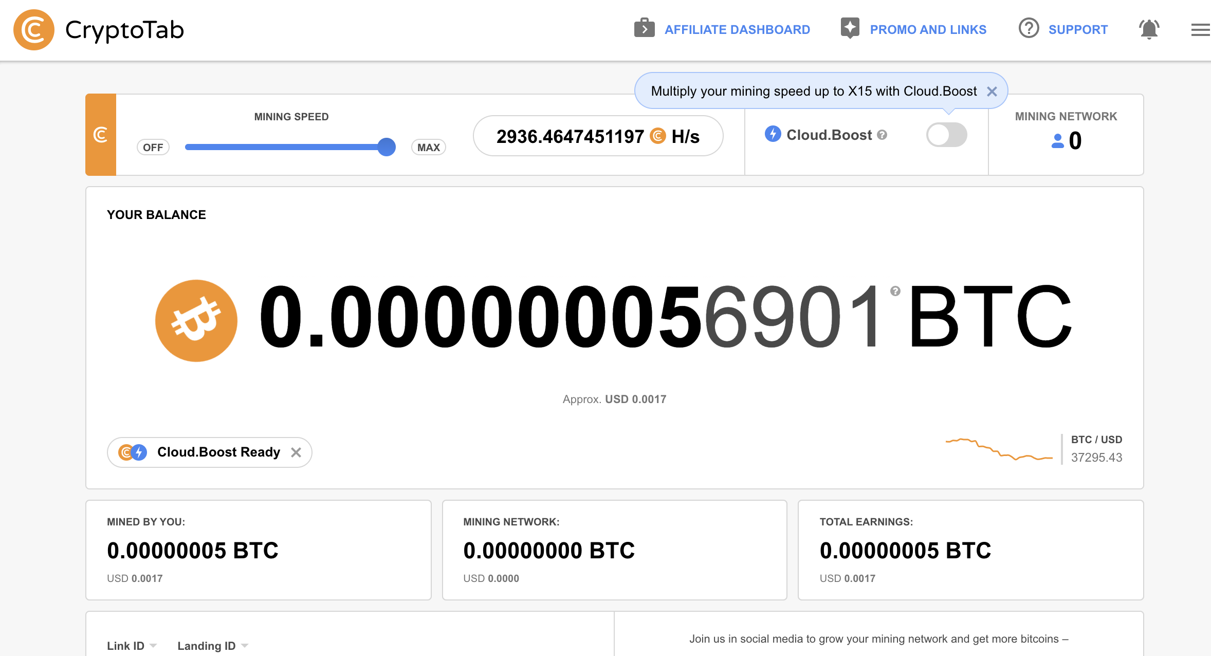 ソロマイニングでもBTCを手に入れることはできますが、CryptoTabで稼ぐための最も効果的な方法はマイニングそのものではありません。大規模でよく発達したマイニングネットワークがあれば、毎月何百、何千ドルもの報酬を得ることができます。大きなサイズのネットワークを所有するために必要なのは、できるだけ多くの紹介者を集めることです。