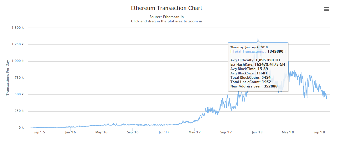 4/1/2018 => 1.349.890 Tx/day. These are about 15,62 Tx/sec