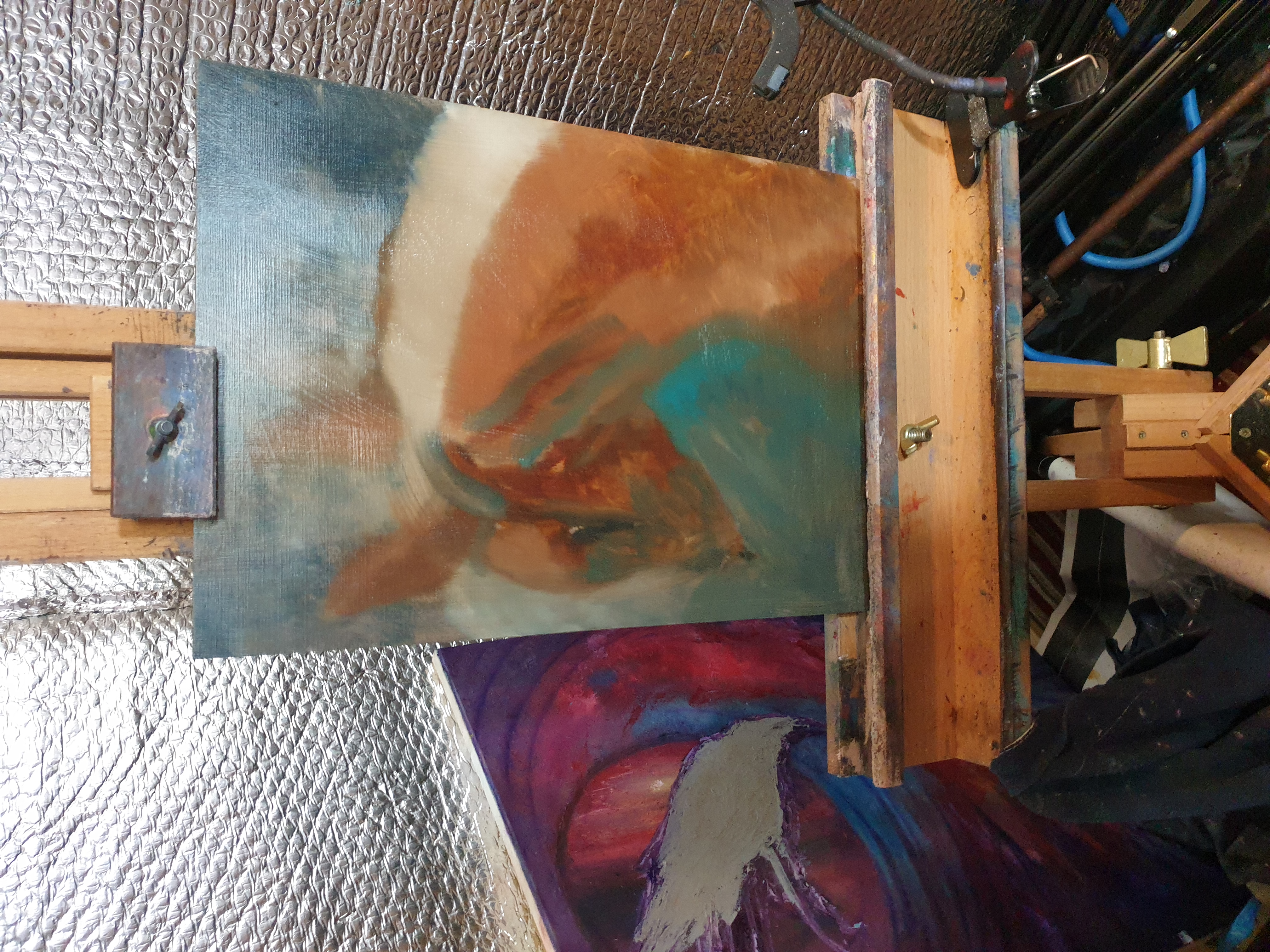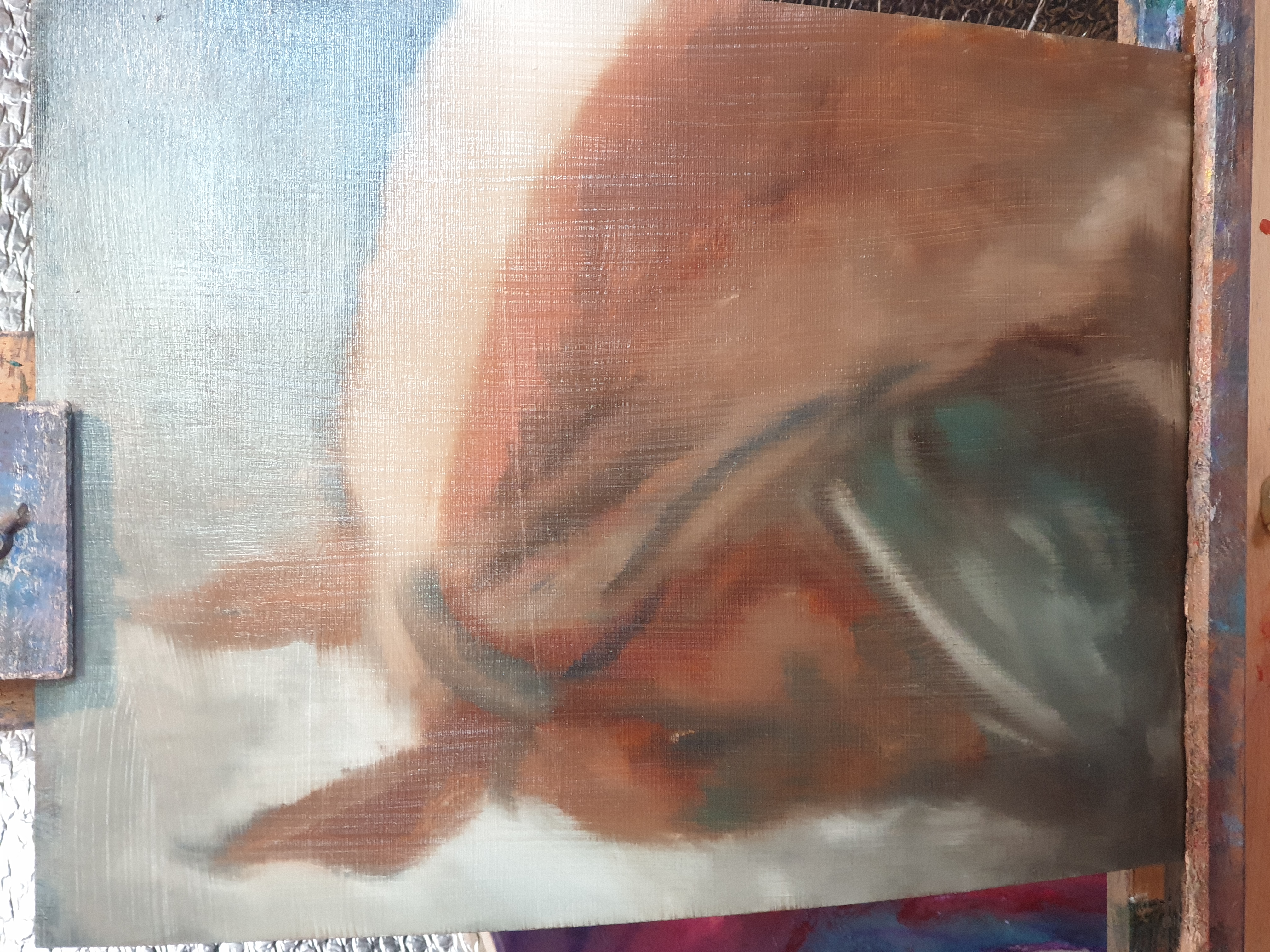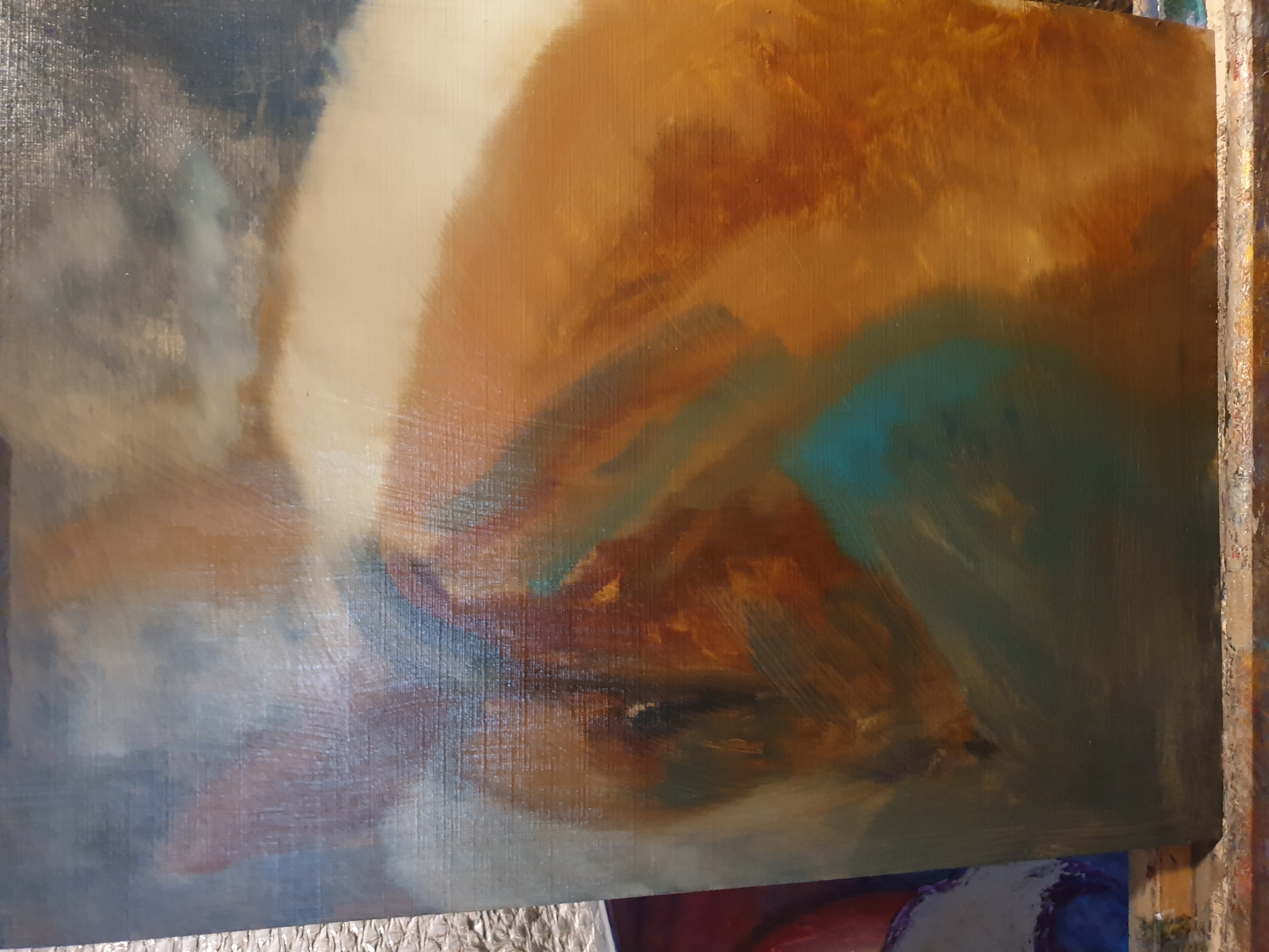 This is an oil painting on canvas board built up wet in wet with raw umber cerulean blue cobalt blue burnt umber burnt sienna titanium white and ivory black. In Micheal Harding range. Painting non stop for the best part of a day and completing it over the last four hours today. Im told her name is Jaylo, the horse that is. Hope you like the picture. Hopefully you will see a progress report on my previous post in the next few days once dry enough to continue with the final layers and bring it towards completion.