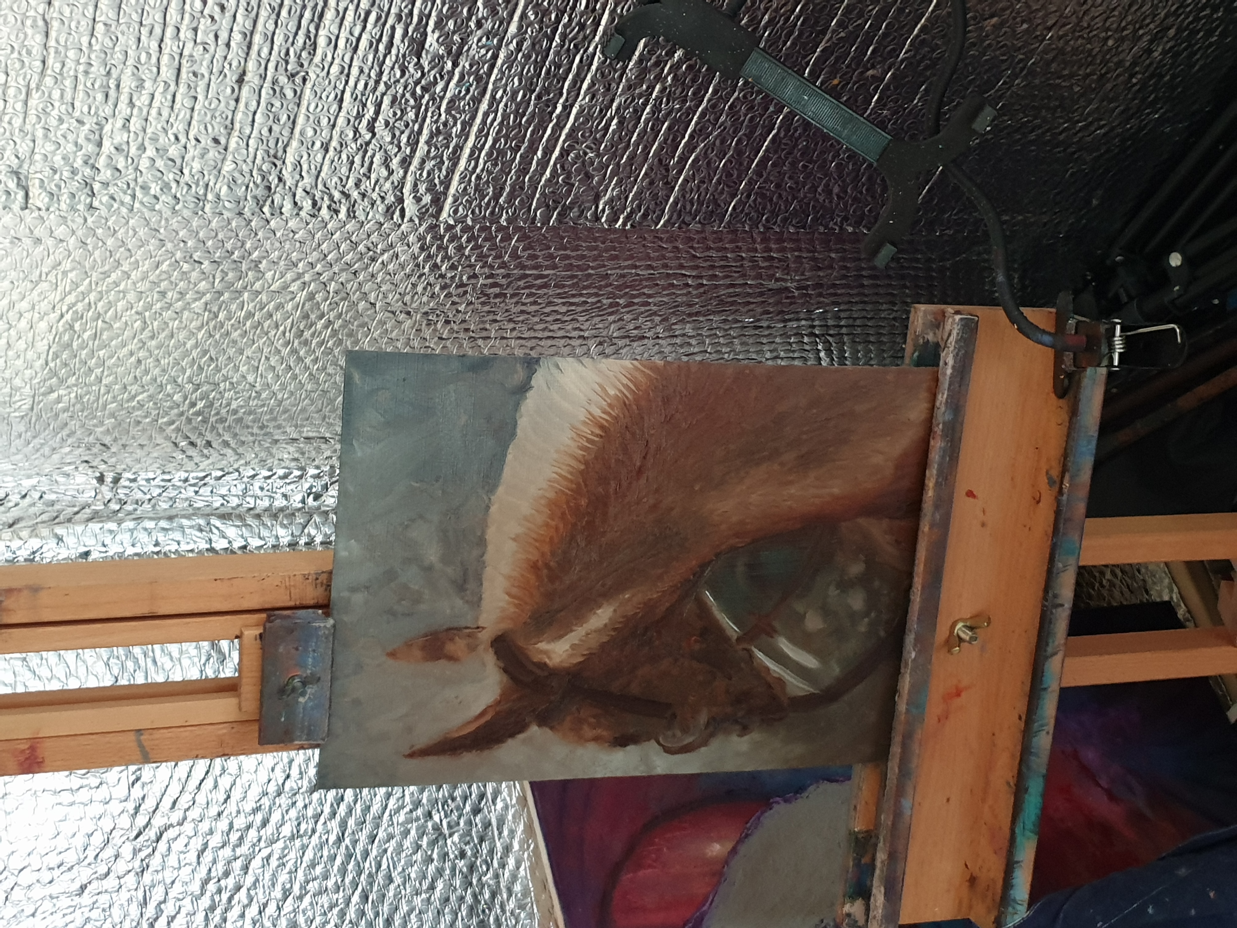 Just completed this one while the previous painting dries ready for more layers. I have included a few clips on how I arrived at the finished product although the picture jumps along more than usual as I got totally engrossed in this painting. I saw it on a horse painting social media site anf couldn't resist the challenge. The picture reference came with all permissions of use so I had to go for it. Photo credit : Sue Wolfe Rathbone.