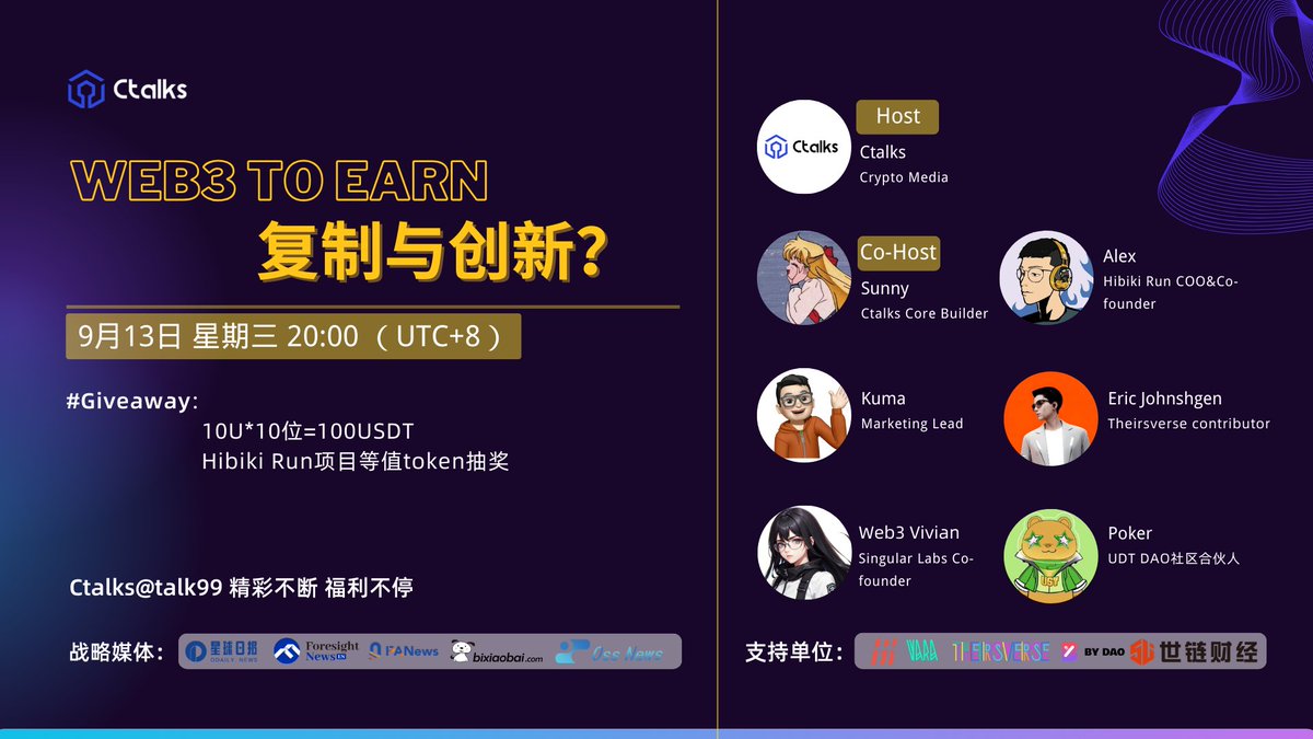 Ctalks Spacedalin998 (50)in Ctalks • 2 years ago Ctalks Space,再聊经典话题 X to Earn 参与领取价值100USDT代币奖励 #Coinbase #AIDOGE #Giveaway #Airdrop #iweb3 #ctalks #ann #web3 #gamefi #PlayToEarn 📍Click https://denet.me/m/CVaBrc to join & get money #Coinbase #AIDOGE #Giveaway #Airdrop #iweb3 #ctalks #ann #web3 #gamefi #PlayToEarn