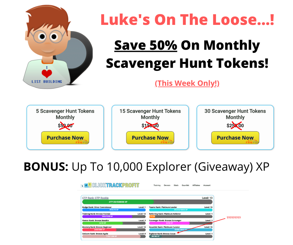 One of the more popular promos that ClickTrackProfit offers it's partners and members is the Scavenger Hunt!