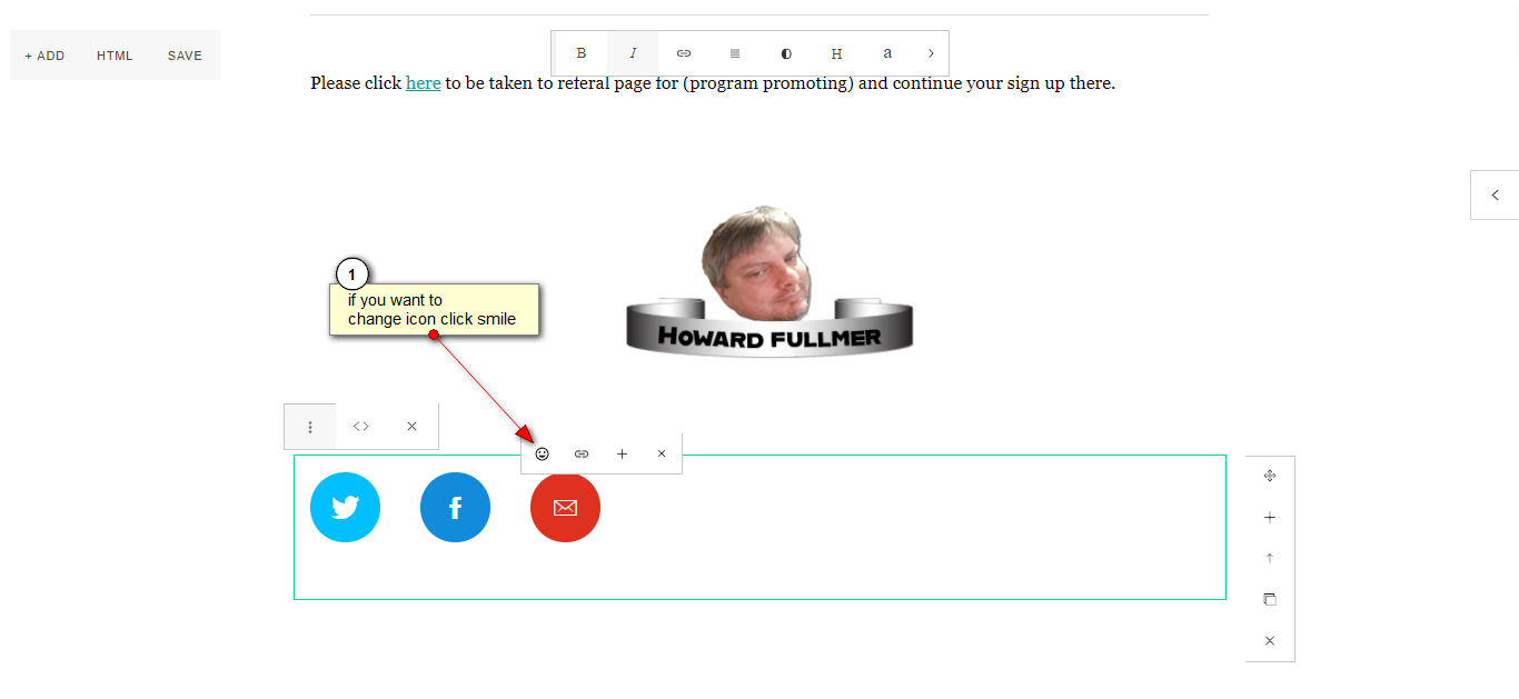 if you want to change the icon in the buttons you can do that by clicking on the smile icon when you click on the button icon you want to change.