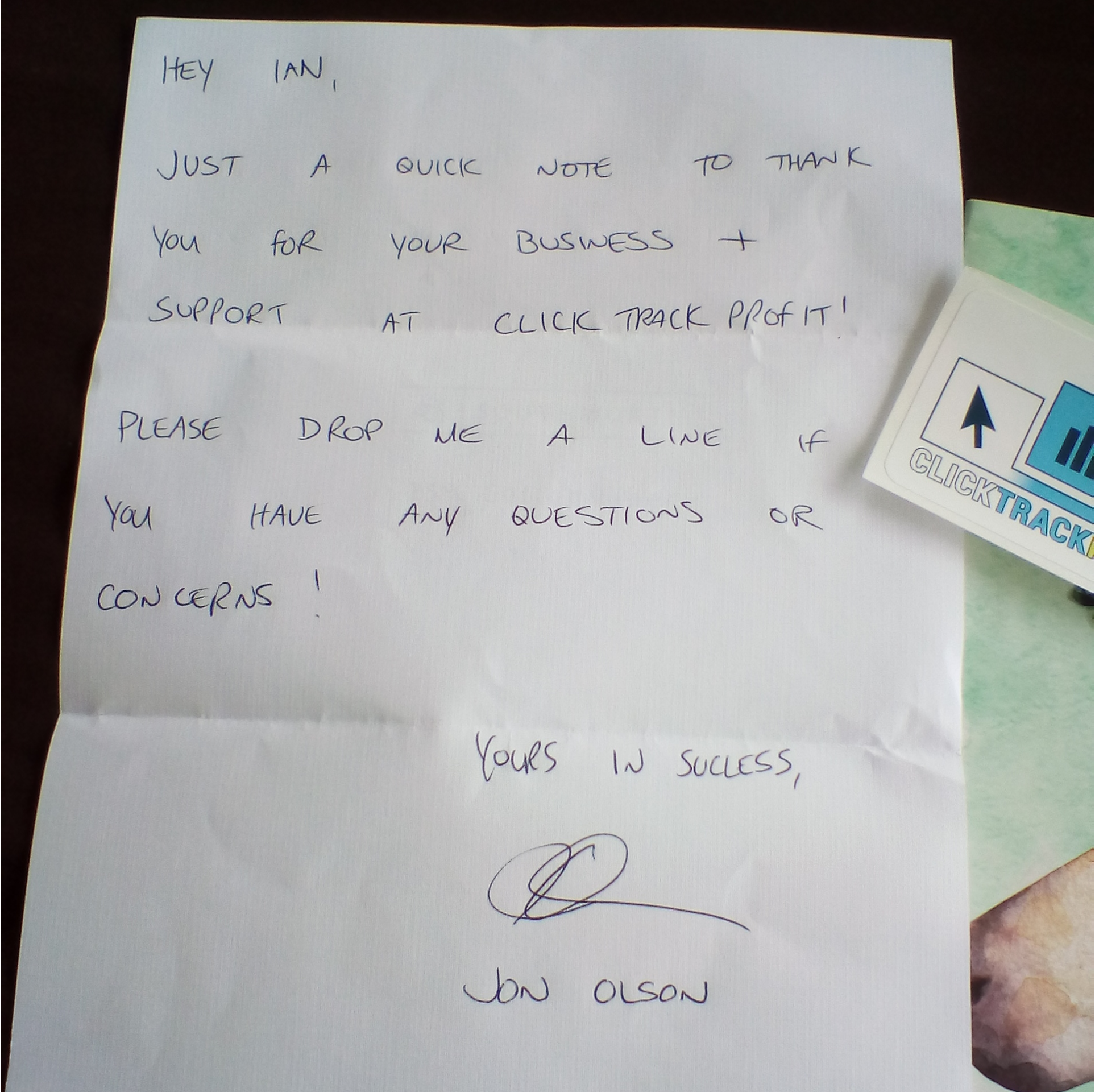 Yeah Bradley, he still does care. The reason is simple: he's been doing this thank-you reinforcement for so long, he sees that activity as being part and parcel of his business. Lots to learn from Jon, and this aspect is just one of them. Now that's a sign of true leadership!