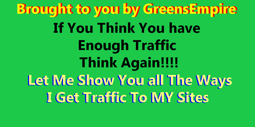 There is Thousands of places to get Traffic and I want to help you with some of that Traffic if you wouldn't mind.