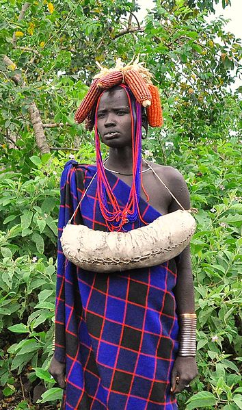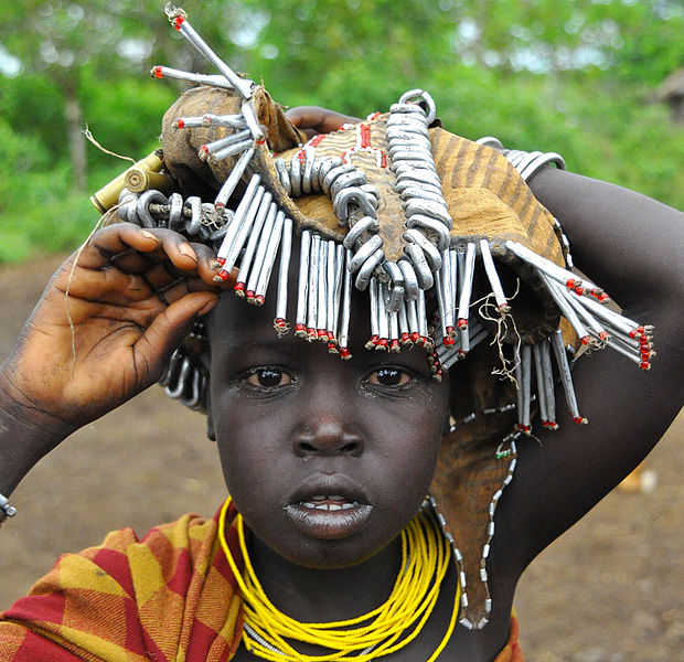 source: Wikimedia CommonsThe Mursi tribe also stretch their ears and adorn themselves with beaded earrings and headdresses which can be made with other materials such as horns gotten from cattle, gun shells, fruits or anything that they feel will improve their appearance and make them more attractive.
