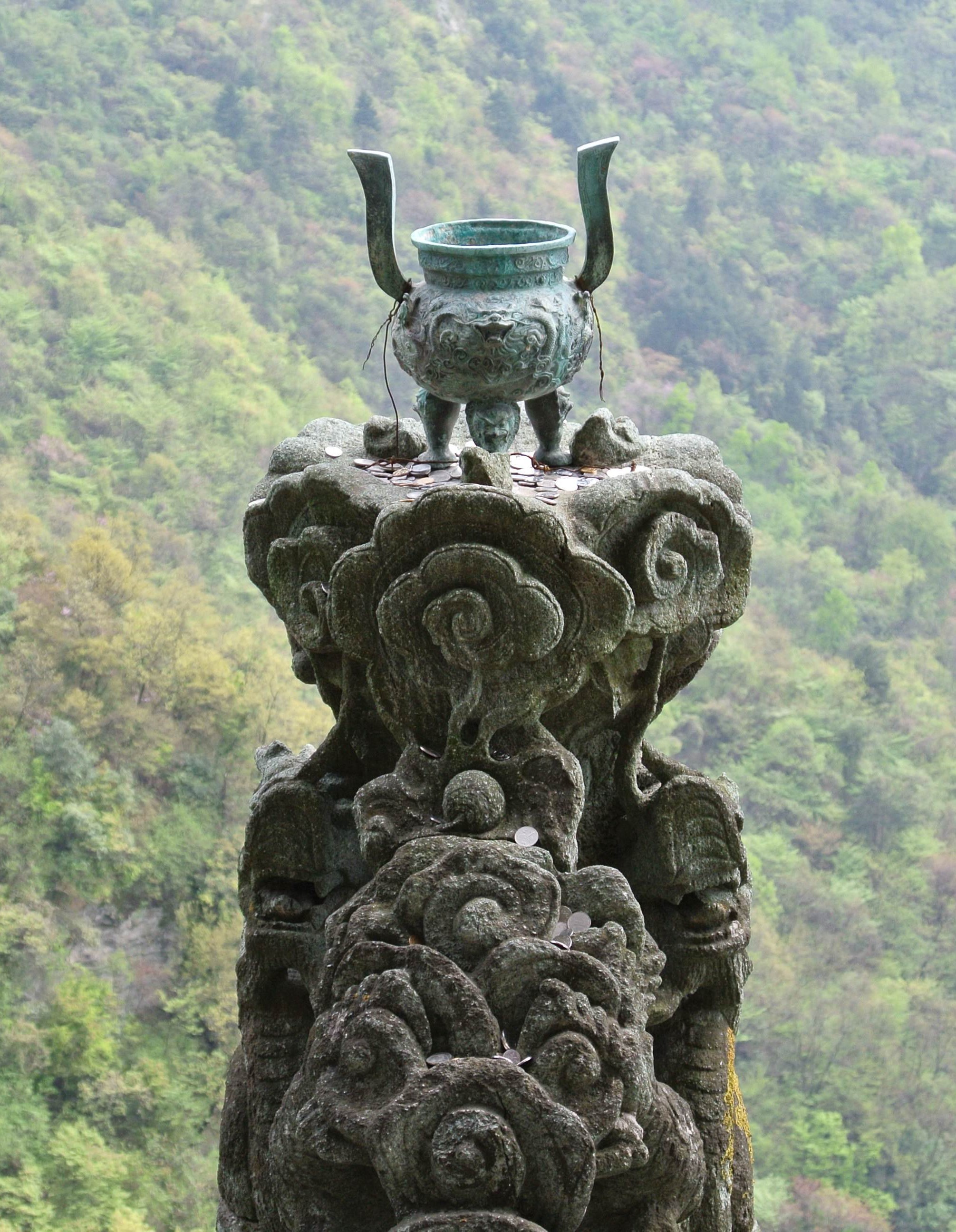 The reason lies in the fact that the incense is in a different place. Wudang mountain is not only one of the important schools of Chinese martial arts, or Chinese Taoism culture, since ancient times is known as the "everlasting unique scenic spot, the day the first one seazan", and it is enjoy the laudatory title of "world a seazan", the main or because in wudang mountain rock "Tianyi zhenqing wanshou palace stone palace." outside a seat near the cliff carved dragon stone beam. It dangling out of 2.9 m, width is about 30 cm long, carved above have panlong, ancient craftsmen are round is carved, engraved look and graven images, so many ways, the merger of the two dragons, modelling is unaware, clouds of primitive simplicity, look up a ball of fire, the two dragons flew ahead, breathtaking. At the top was a small, delicate censer. This is what makes a lot of fragrant visitors to be known as the first incense. Legend has it that the two dragons were the emperor of xuanwu, and he often rode them around.