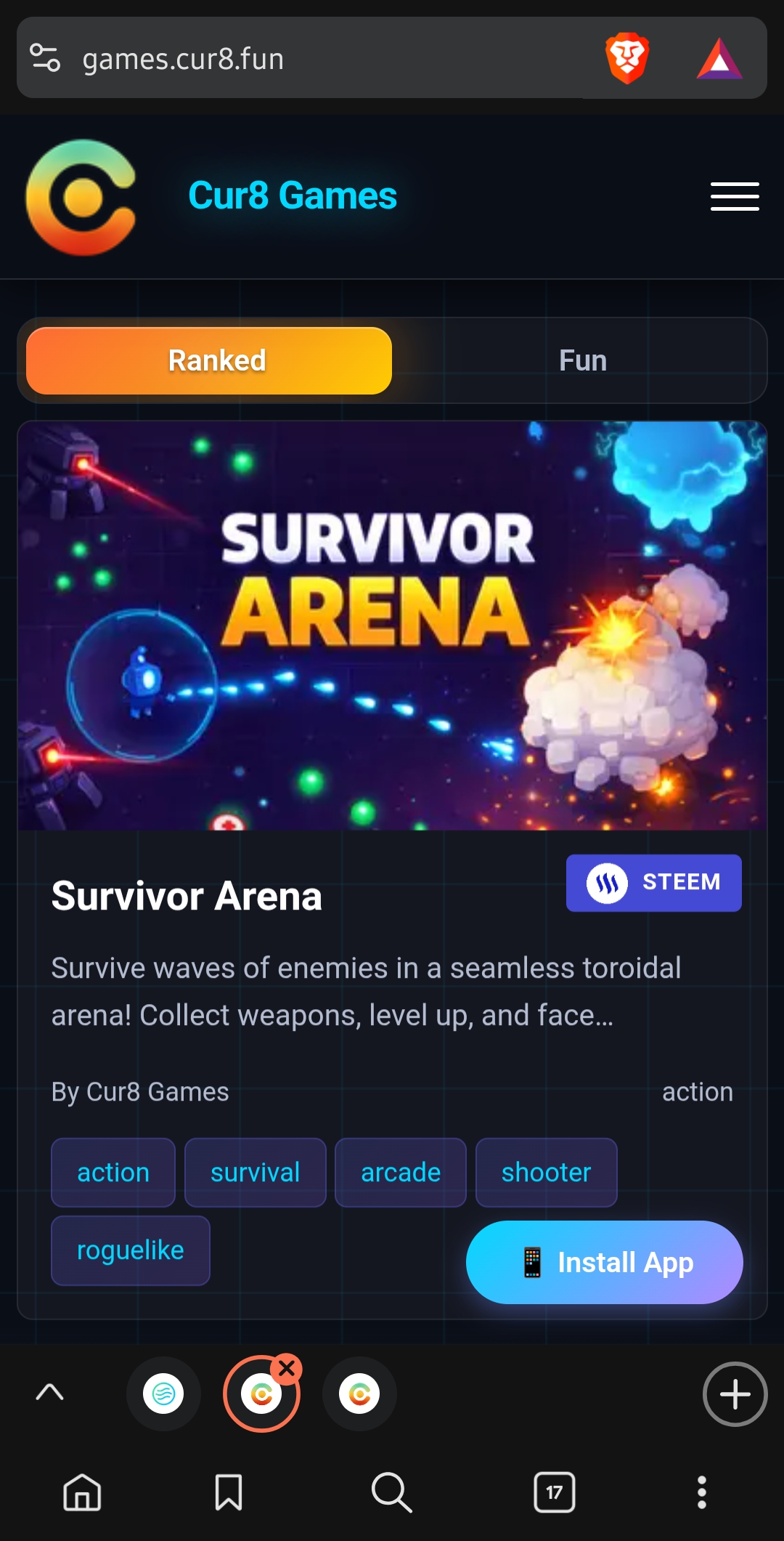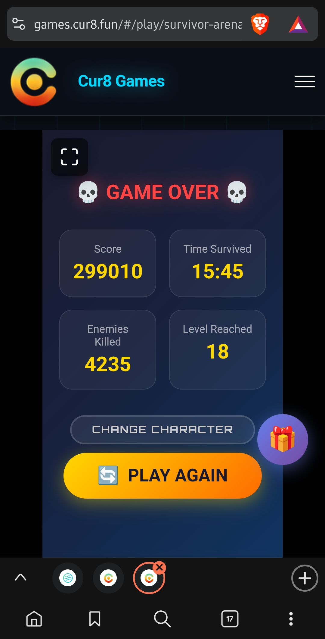🎮 CUR8 Games — Survivor Arena Run with Record
