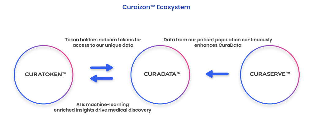 CuraServe is a healthcare ecosystem that improves drug compliance and benefits patients and health care providers. Curaison uses a range of community outreach tools and messages, supported by predictive and analytical models, to improve drug compliance. Because the CuraServe solution helps the patient, it also generates patient data. Data is then anonymized and available through CuraData. The only way pharmaceutical companies, researchers and researchers can access this data is by purchasing CuraTokens.
