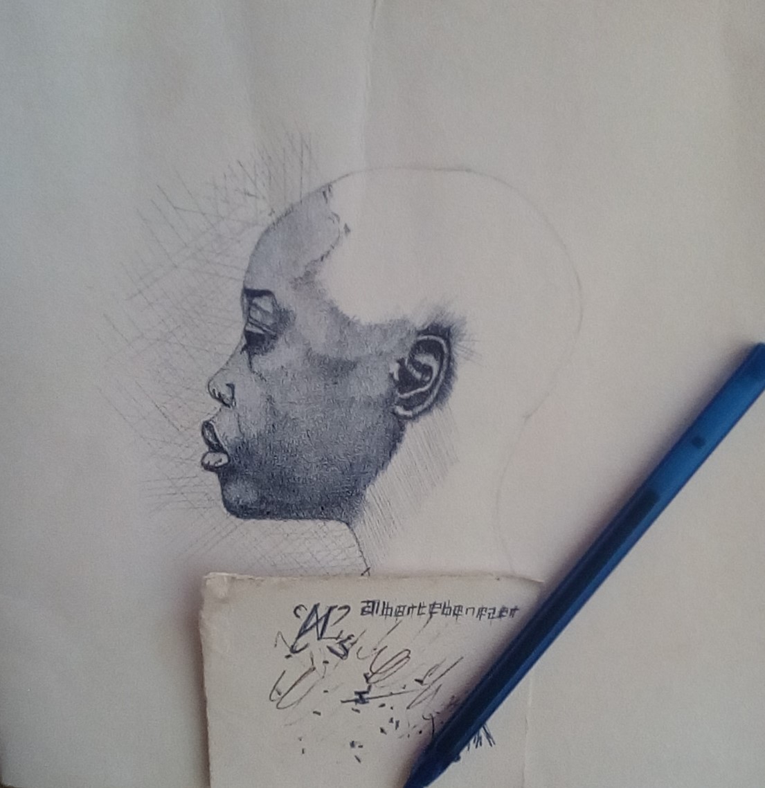 Biro for the shading pencil for the outline strictly freehand