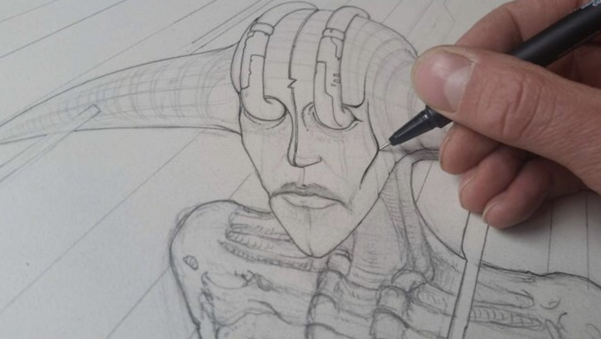 Next is another incredible piece of art with multiple techniques including pencil, pen, and watercolor complete with progress pics. It’s currently on display at “Disconnect,” his art gallery in Berlin—check it out: