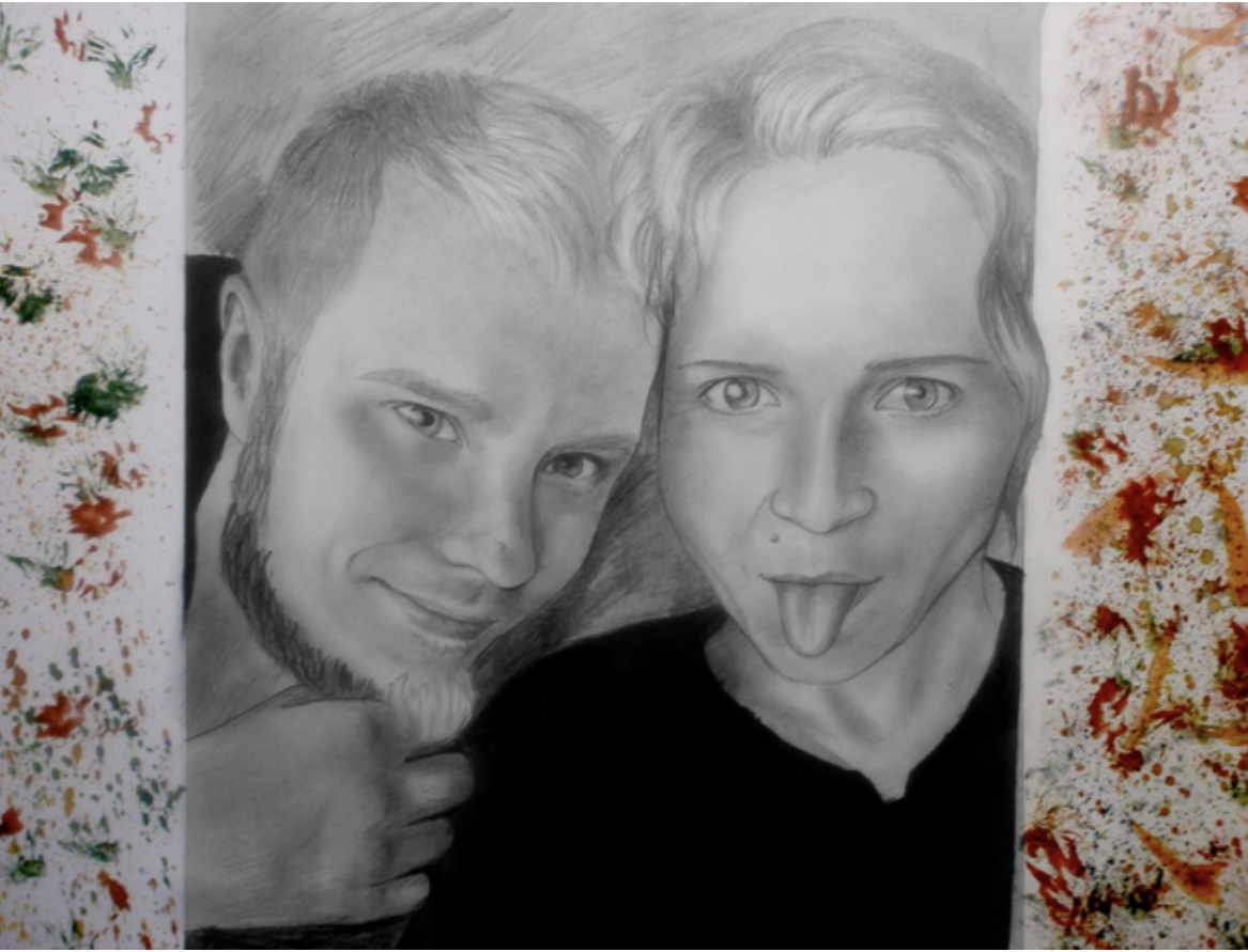 Next is a multi-talented artist who’s young to the platform, Alex Krasnov, from Ukraine. This graphite pencil drawing is of his former guitarist, together with his wife, with a detailed set of progress pictures—check it out: