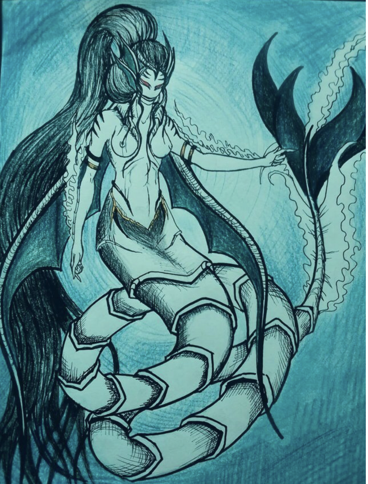 Roinujx, of Puerto La Cruz, got me to open up my translation app again. This is a freestyle drawing inspired by “sirens” from the popular movie series, Pirates Of The Caribbean—check it out: