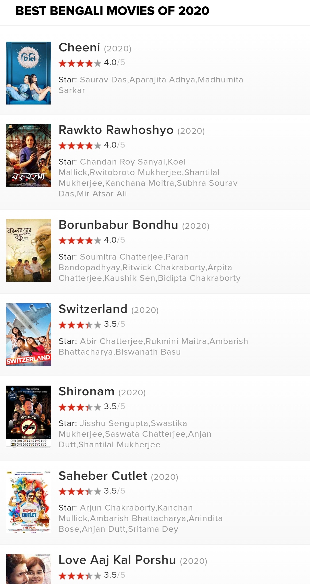 I think I'm interested in this community. I also like a few films in Bengali, including: Cheeni, Rawkto Rawoshyo, Borunbabur Boundhu, Shironam and Amar Artanad.