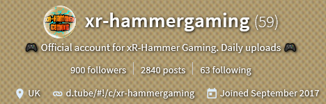 @Xr-hammergaming is a creator who produces Dtube and Dlive videos. He has wonderful banter that you get to see when he playing solo or with other players. He uploads daily and is playing a couple of different games at this time.