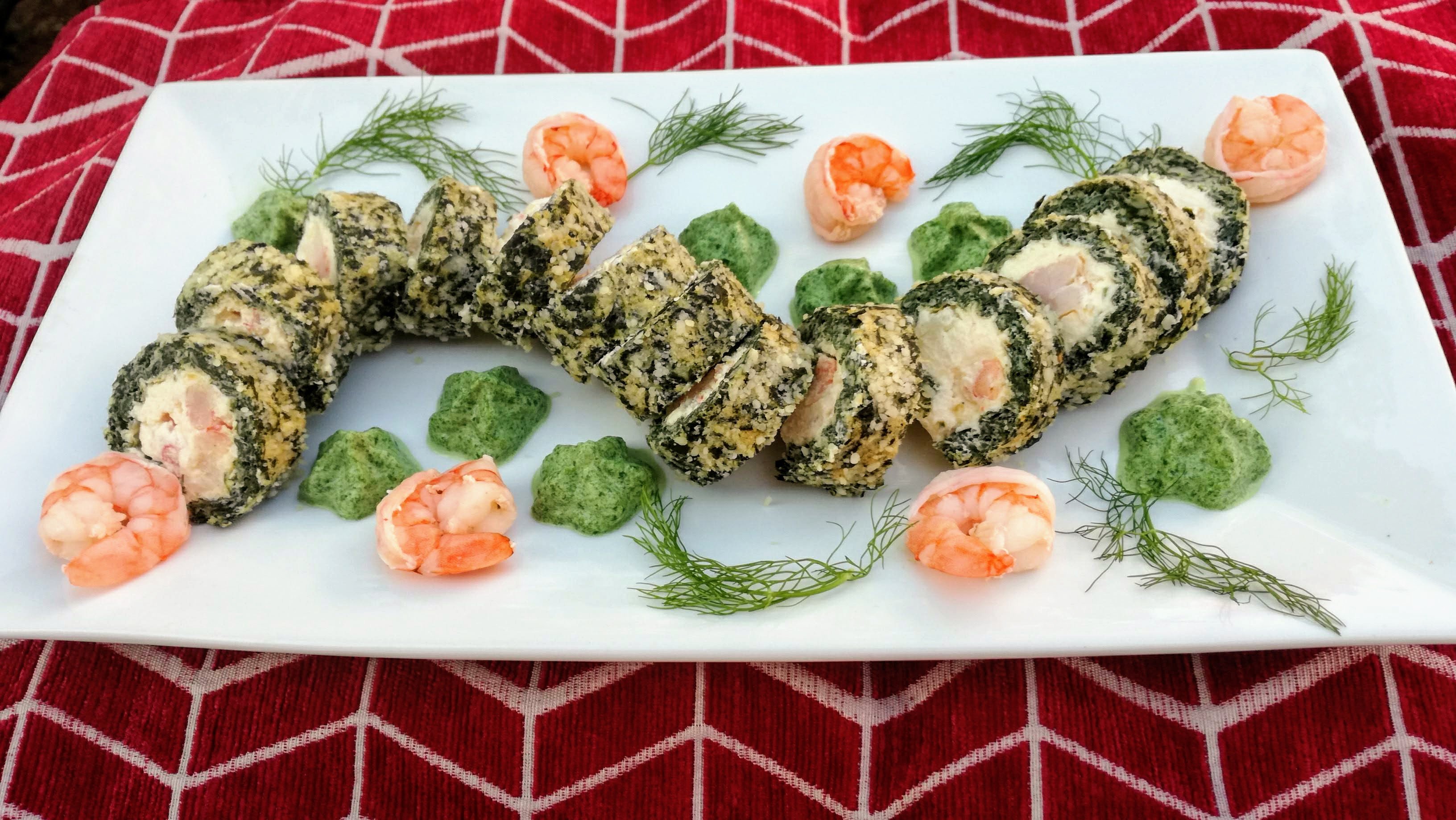 Spinach & Prawn Roulade with Spinach Foam