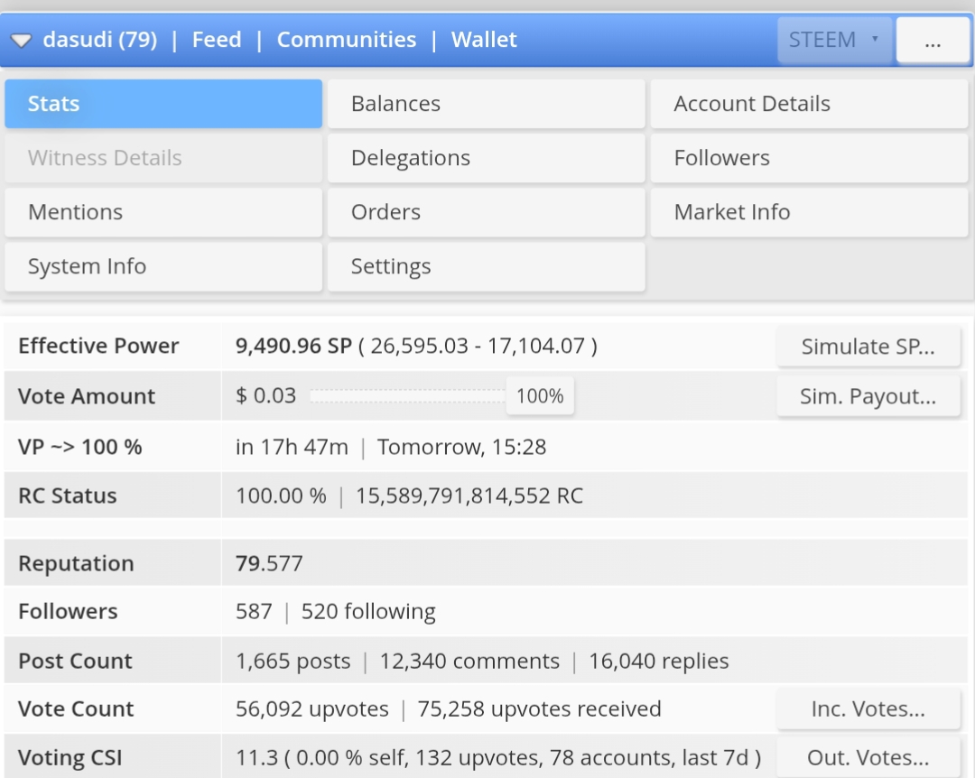 | @dasudi | Venezuela | 26,595.03 | 79.577 | 11.3 | steem-atlas |