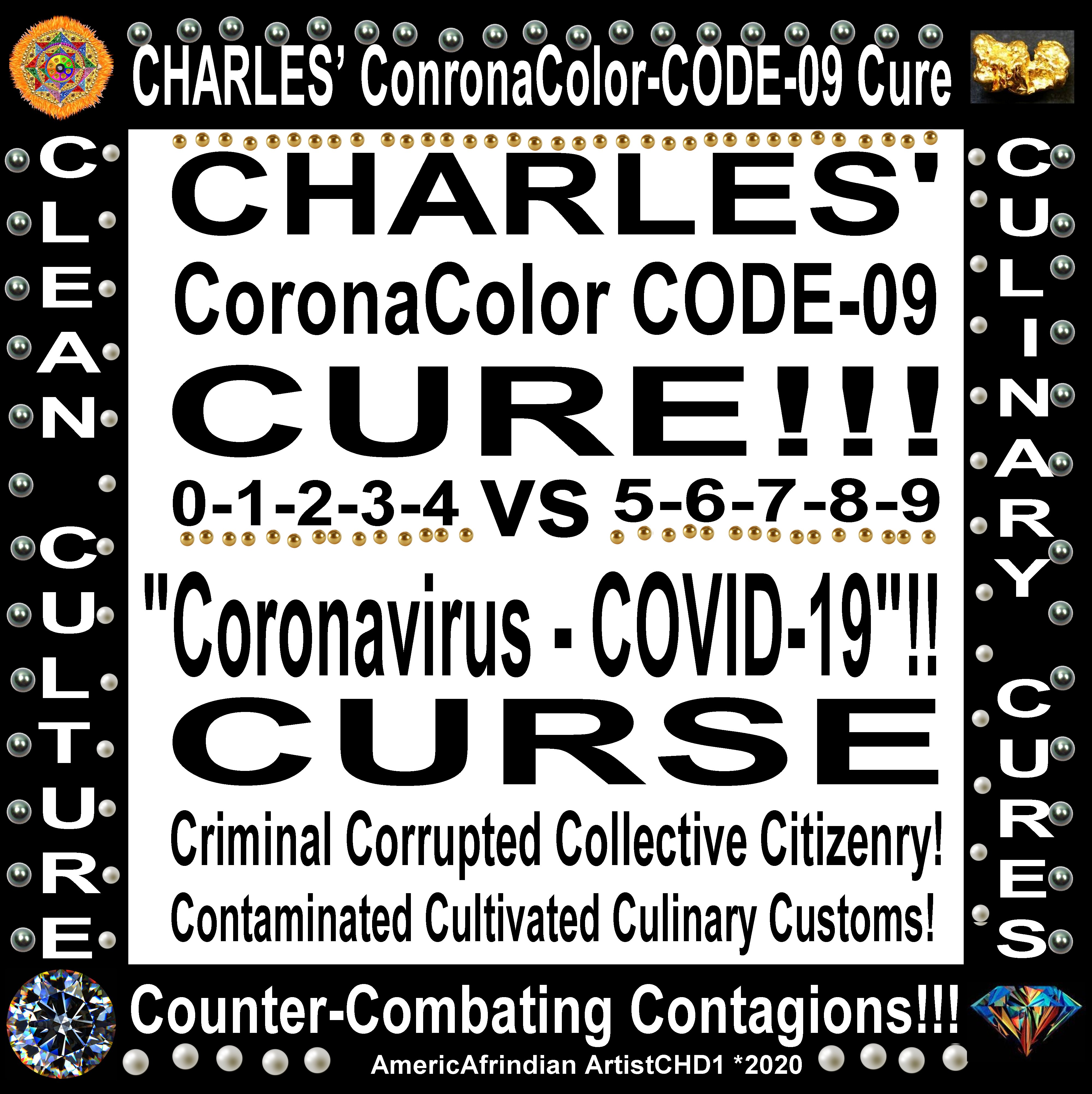 CHARLES’ CORONACOLOR-CODE-09 CURES vs ”CORONAVIRUS-COVID-19” CURSES!! = Criminally corrupted collective citizenry vs cleansed cultural culinary customs!!= Continental countries comprising cosmetic coloration complexions. Certified childbirth citizens categorized “corporation company” commercialized commodities, conferring capital cash currencies = $$$ Correct childcare, cease calling children “copper-colored”, “colored” crayons, crazily classified colorized creams – chocolates – cocoas – coconuts, caramels – Corona-Colors contains a center carbon core creation cradle causative + curative causes and correlating criminal cases. Conscious confusions – cognizant chaos, conscientious combustible civic conflicts. Citywide – countywide – countrywide, crisscrossing continentals, Common colds -coughs, cardiovascular congestion, coronary calcification – clogging, cellular cancers configurations ceased circulations, Corona Conscious Conscience Cosmic CREATOR-1 Conditional Cause + Case {0919} complete culinary cures, courageously counter-combatS