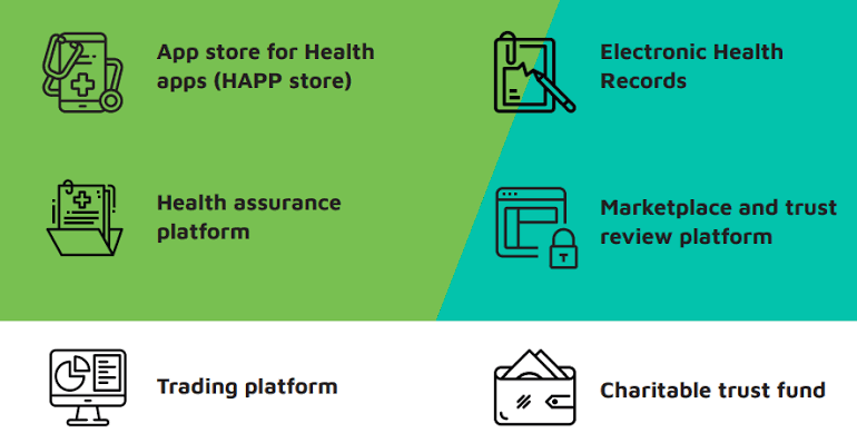 - Electronic Health Record: In here, patient and any user on the platform are in control of their data.