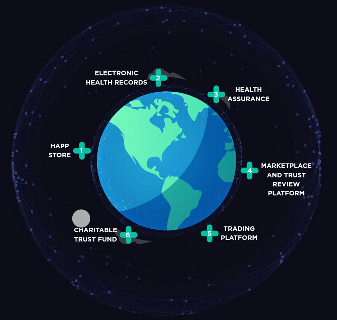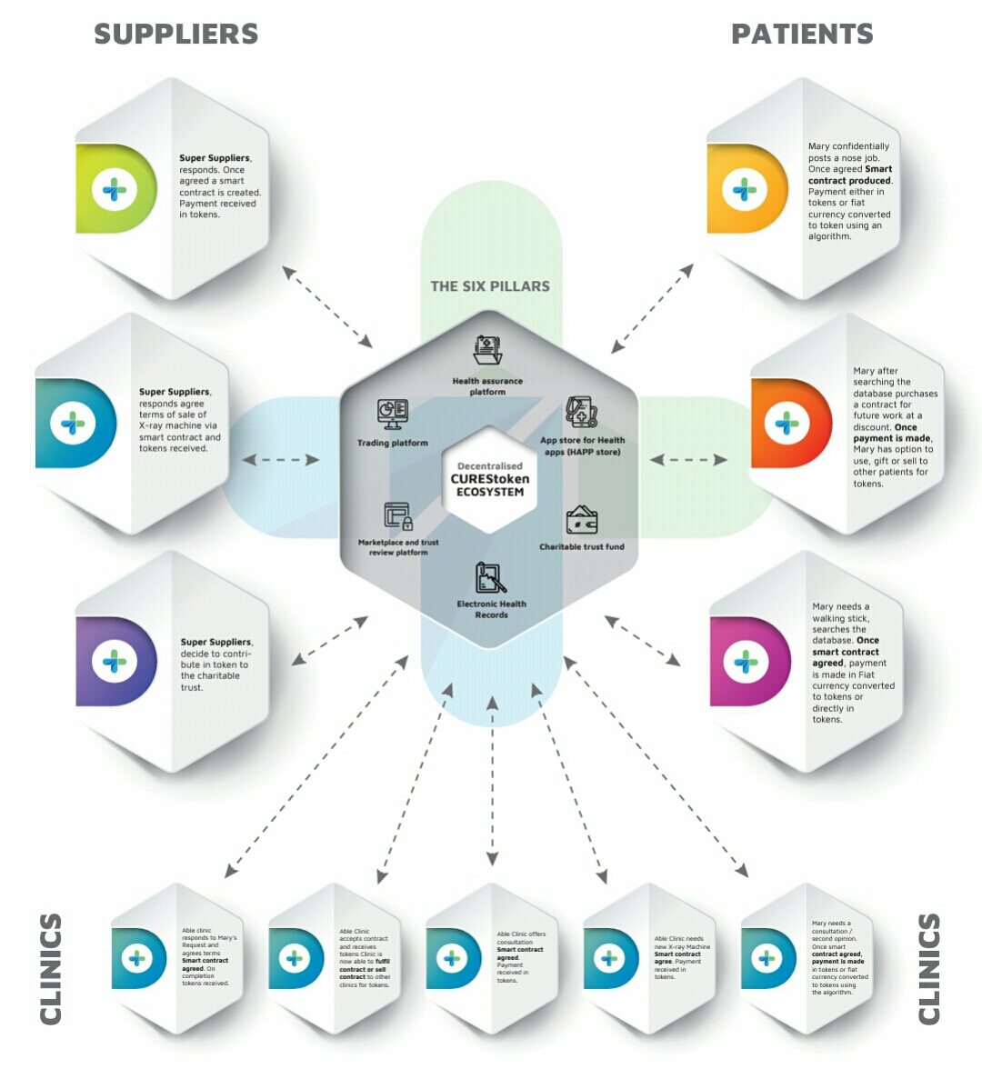 The CURES platform is built on a six core pillar such as the App store for health applications (HAPP store), trading platform, health assurance platform, charitable trust fund, electronic health records, marketplace and review platform that will facilitate healthcare processes and expedite storing of data.