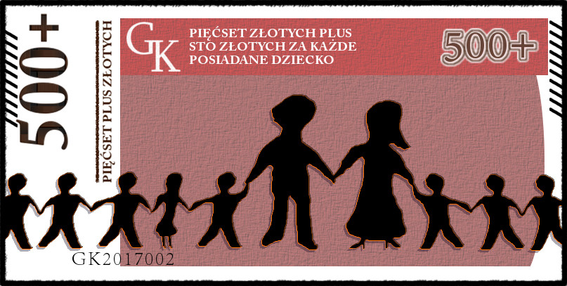 Siedzimy sobie z Ewą i Anią w Szczecińskim Zic Zacu. Czekamy na cudowne, idealnie doprawione żeberka i coś bez mięsa. Nagle za szybą na chodniku pojawia się kobieta z wózkiem i 5 dzieci. Ooo... "500+". To na to idą nasze pieniądze. Paczka fajek musi być. Niech jej cudowne potomstwo wdycha dym od samego początku. "500+" puszczane z dymem... Tak właśnie pojawił się obraz w mojej głowie który mam przyjemność Wam przedstawić :)