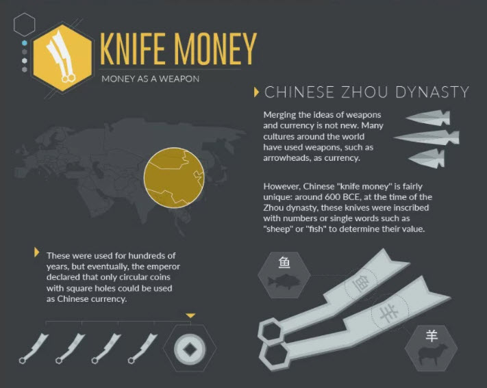 Silah ve para birimi fikirlerini birleştirmek yeni değil. Birçok kültür ok uçlarını dünya çapında para birimi olarak kullandı.