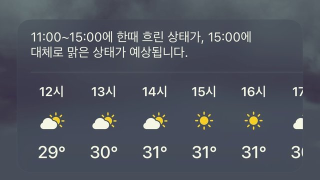 정확하지는 않지만 통계를 살펴보는 것도 필요하다. 그래서 오늘의 일기예보를 확인했다. 오늘 오후에 해가 뜬단다.