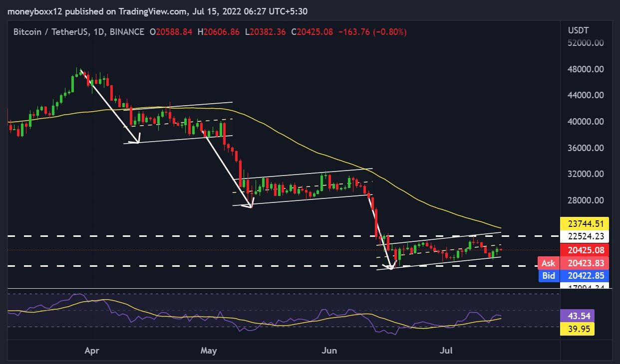 ๐ถ ๋นํธ์ฝ์ธ์ ์ฌ์ ํ โโ์ข์ ์ ํธ์ธ ์ค๋ฆ์ฐจ์ ์ฑ๋์ ํ๋จ ์ถ์ธ์ ์์ ๋จธ๋ฌผ๊ณ ์์ต๋๋ค. $20,700์ด ์ ํญ์ผ๋ก ์์ฉํ๊ณ ์์ผ๋ฉฐ Bitcoin์ ์ด ์์ค ์ด์์์ ์์ด๋ฅผ ๋ง๊ฐํด์ผ ํฉ๋๋ค.