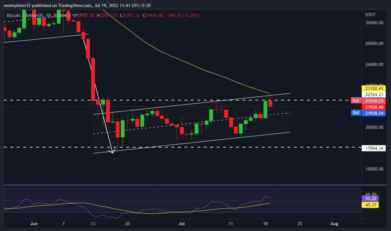 ๐ถ Bitcoin์ ์ด์ฌํ ํํ๋์ด 50 M.A.๋ ๊ฑฐ์ง๋ง์ํ๋ $ 23,000 ๊ทผ์ฒ์ ๋๋ฌํ์ง๋ง ๋ถํํ๋ ๊ทธ ๊ฐ๊ฒฉ๋์์ ๊ฑฐ๋ถ๋์์ต๋๋ค.