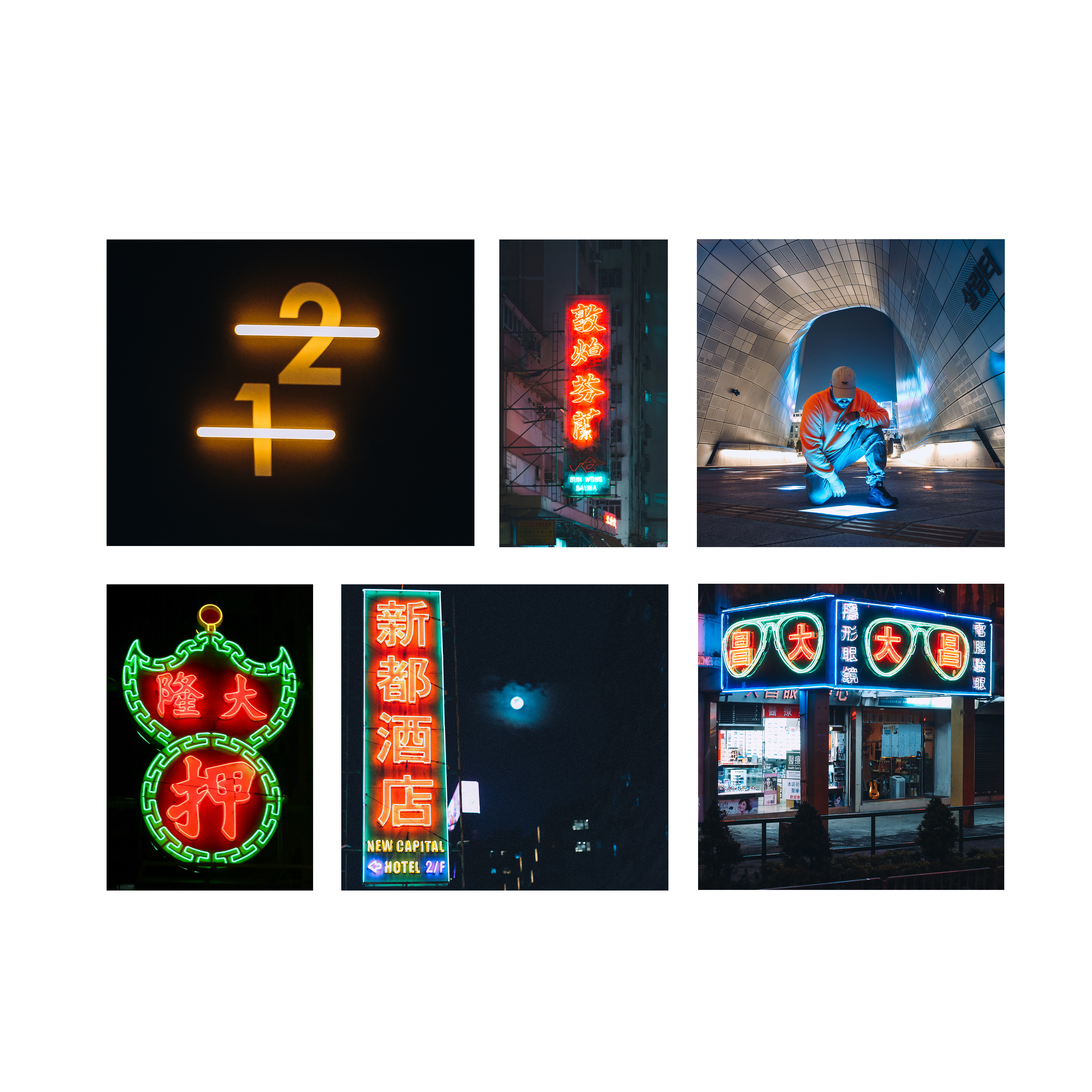 All of the neon signs, were taken from images I have captured before. Some in Hong Kong, and others in different countries. The 1/2 for example, was taken just a month ago, here in South Korea.