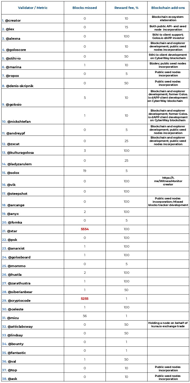 We’re happy to welcome two new validators on board: @top and @ask, whose stats are already included in this very report.